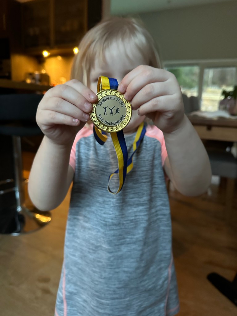 De senaste 10 veckorna har Melissa haft barngymnastik på onsdagar och denna onsdag var det sista tillfället. Det var många barn som var där och de har superkul när de sprang runt och körde hinderbanan. Dessutom blev de riktigt glada för medaljerna de fick.