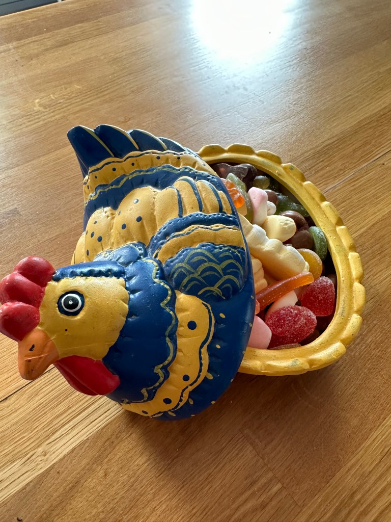 Den här kortveckan blev ännu kortare då den inleddes med två dagars vabb. Men idag har alla varit tillbaka på förskola och jobb som vanligt! Och idag fick även barnen vara utklädda på förskolan, något som alltid är uppskattat hos barnen! När vi hämtade barnen från förskolan hade även påskharen varit framme här hemma och gömt varsitt påskägg i kattborgen. Två riktigt lyckliga barn kan jag säga att det var när de såg alla godsaker som låg i äggen. Vindruvorna gick åt fort kan jag säga, de få godisbitar som låg däri var inte riktigt lika intressanta. Även hönan på bänken hade fått lite gott innehåll som vi vuxna kan äta på.