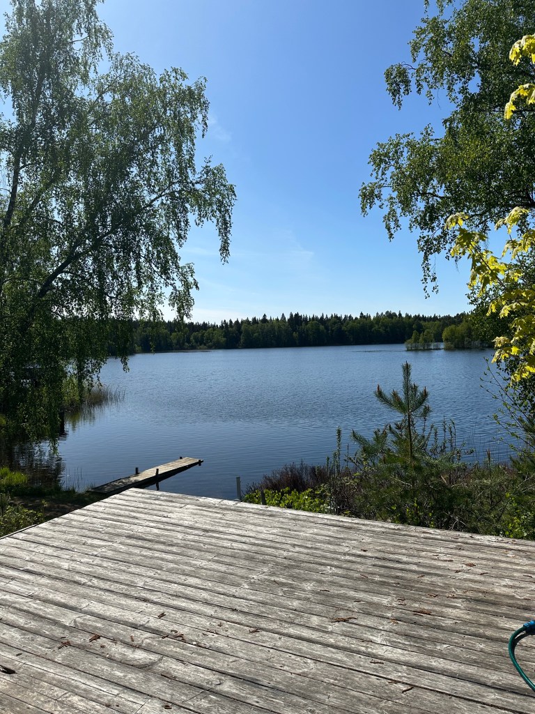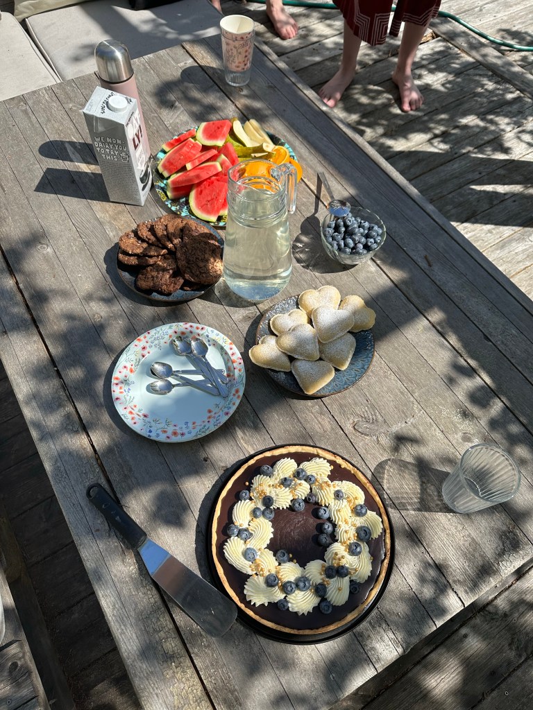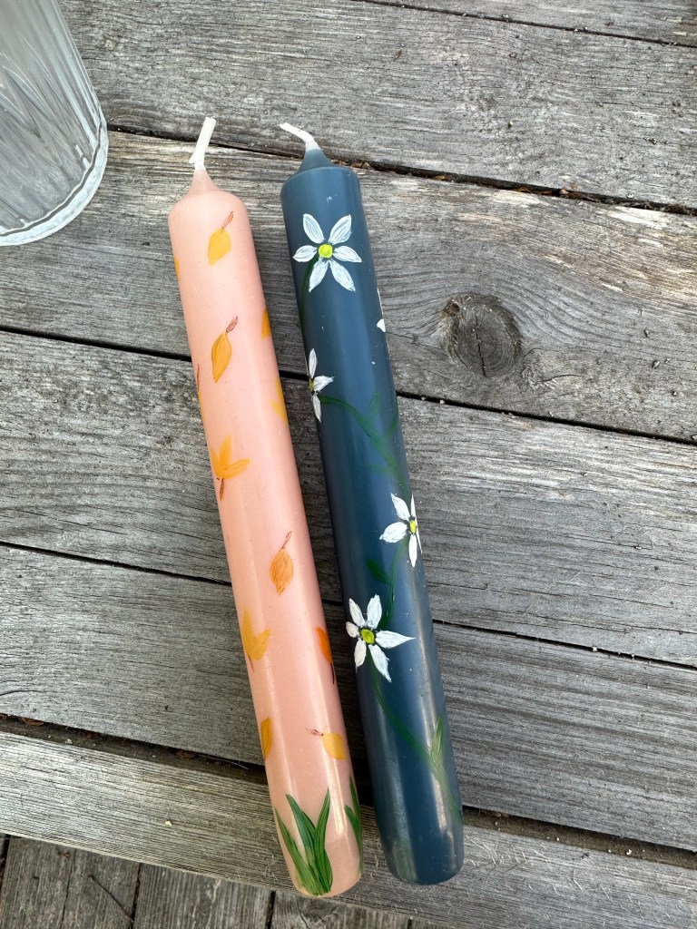 Vi köpte med oss frukost och tog med Mikaela till huset som de hyr. Ett otroligt fint ställe vid sjön. Där blev det lyxfrukost med härliga samtal och sedan var det ut i trädgården med tävlingar i Bäst i test-style. Riktigt roligt och man får verkligen tänka till emellanåt. Sedan blev det fika ute på altanen och målning av ljus. Det var helt nytt för mig att man kan måla ljus med akrylfärg, pilligt men roligt! Och till kvällen blev det ännu mer god mat och efterrätt. En underbar dag med fint väder och härligt sällskap!