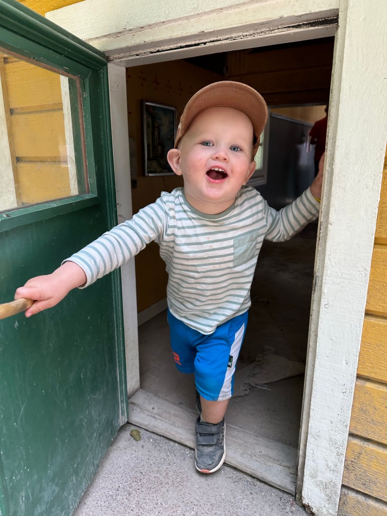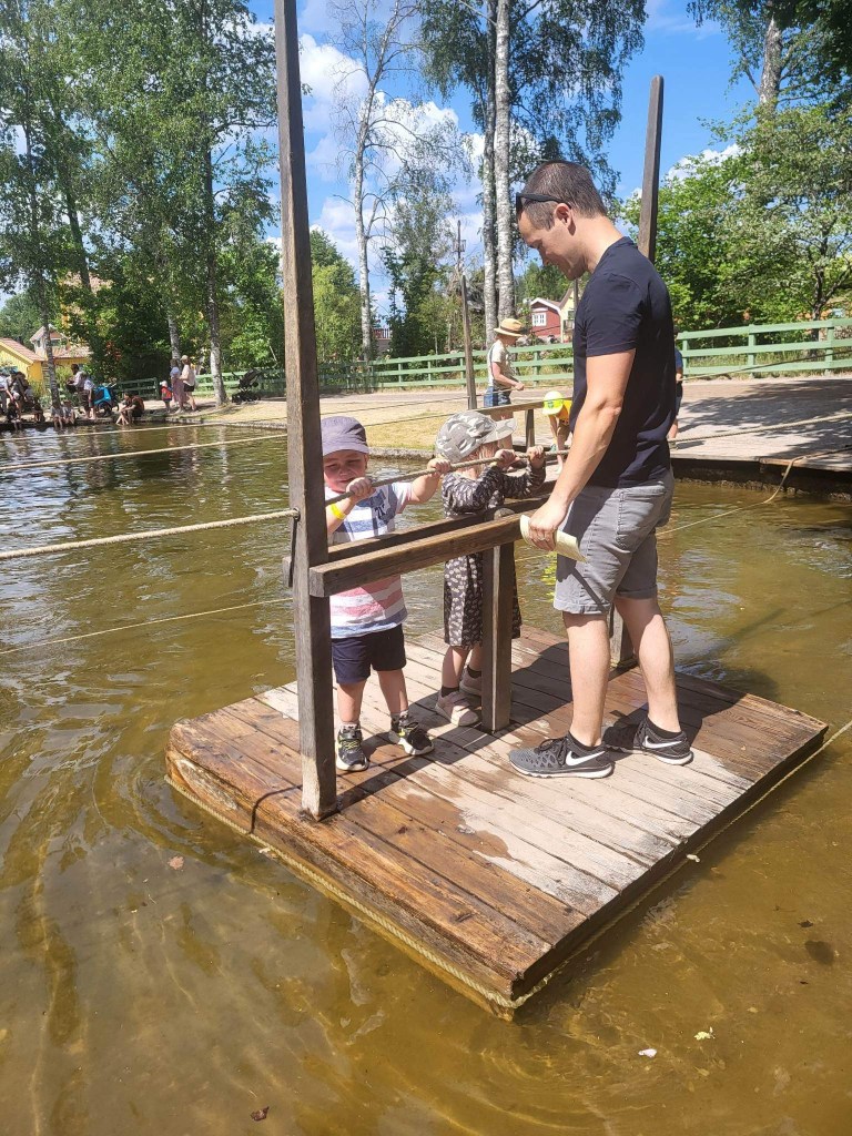 Efter en tur i Pippis hus och en åktur med flotten så blev det lunch på en skuggplats i skogen. Sedan utforskade vi Mattisborgen, husen på Lilla Bråkmakargatan och vid Körsbärsdalen blev det glasspaus. Vidare bar det sedan till Katthult, Karlsson på taket och Nils Karlsson pysslings hus, och vi avslutade sedan i Junibacken där barnen hade hur kul som helst i de små husen. Även om det började varmt på förmiddagen så mulnade det på efterhand och det blev en perfekt temperatur att strosa runt och leka i.
