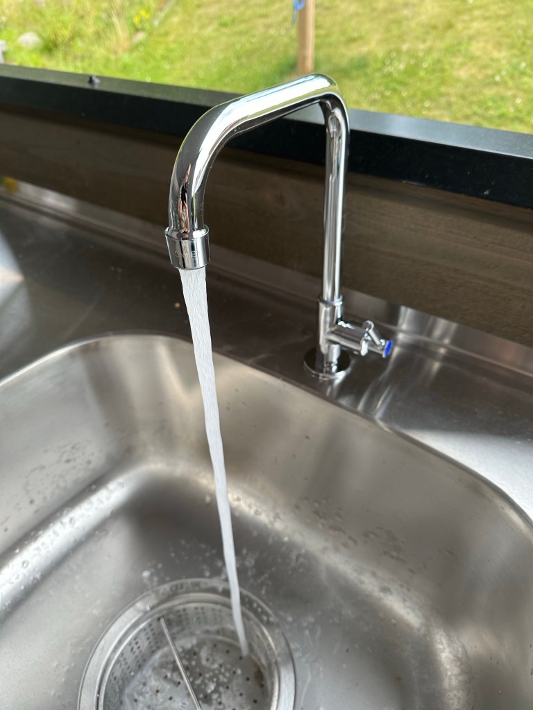 Medan jag stod och fixade i köket hade Melissa en kompis över och Joakim och Wilhelm satte dit kranen på uteköket. Så nu har vi rinnande vatten därute.