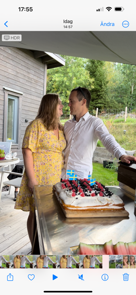 Nu landar vi i soffan efter en fullspäckad dag. Klockan ringde vid 7 och efter det har det gått i ett inför dagens 30 och 29 års kalas. Mat skulle förberedas, tårta läggas mellan, dukas och plockas fram för att kunna sitta utomhus och fixa oss själva.