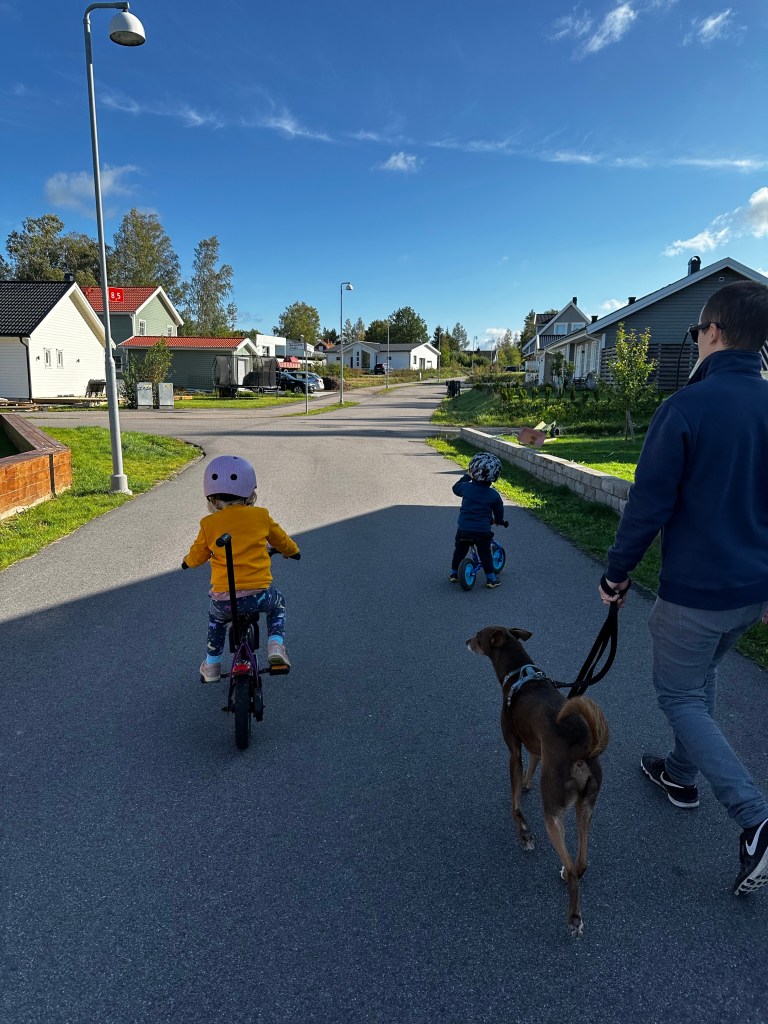 Underbart när det lossnar och barnen kan cykla. Det blir lite mer fart på promenaderna då om man själv går när de cyklar 🙂