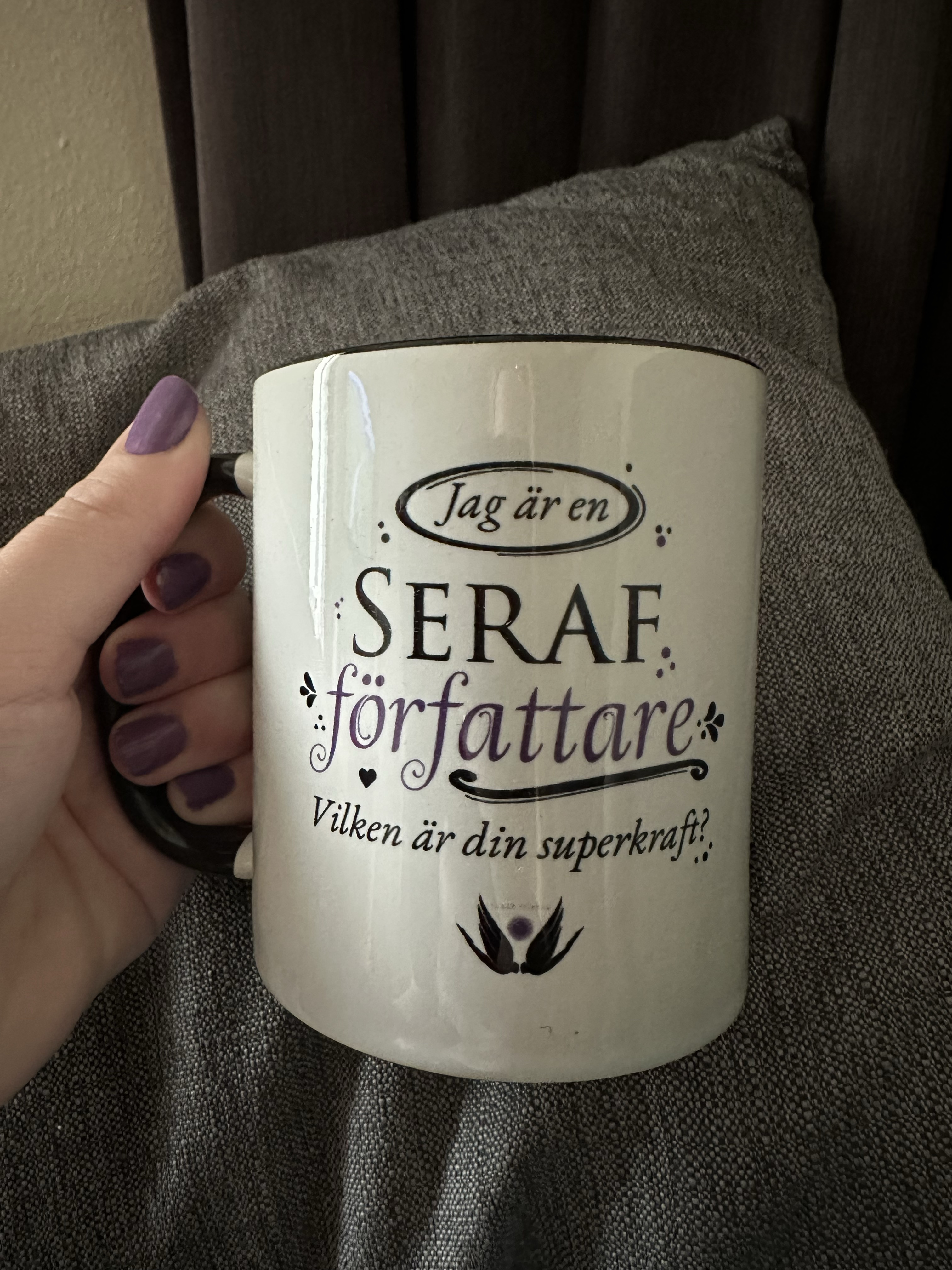 Fick jag med mig något hem? Absolut! Tre böcker följde med hem. Jag var frestad att köpa hem så många fler, men orkade inte riktigt ställa mig i köer som var jättelånga. Och dessutom har jag ett bokpaket som är på väg hem hit snart så valde att hålla lite i pengarna. Jag hämtade även min nya favoritkopp! Och jag kan lägga till att den redan är invigd.