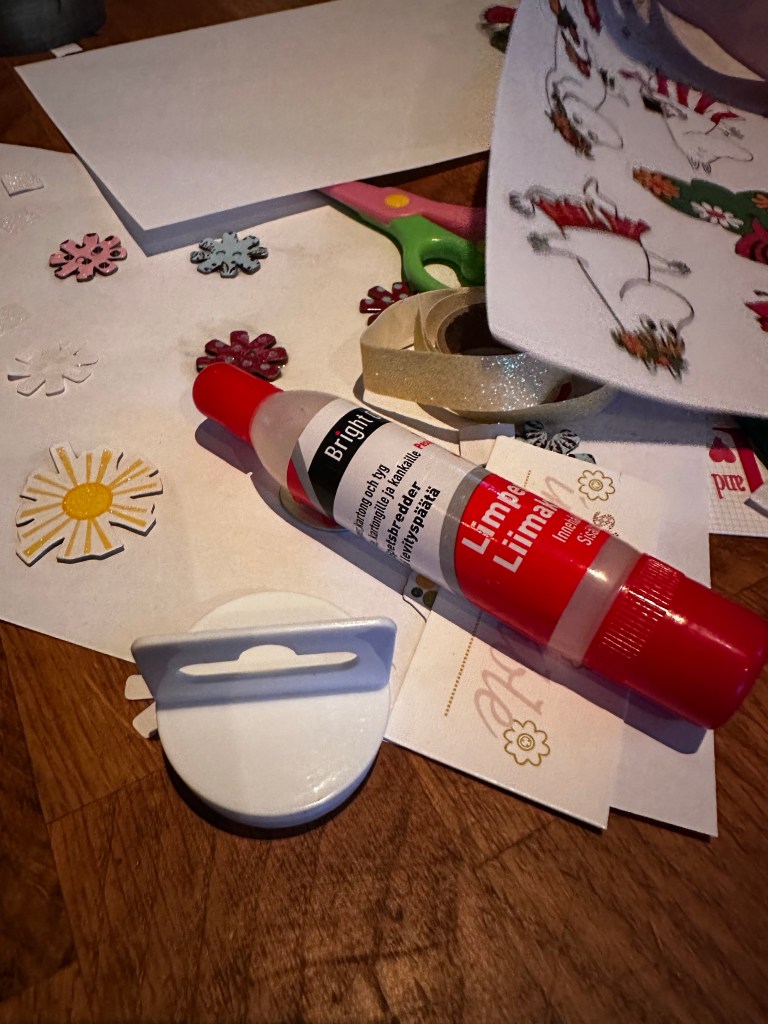 Eftermiddagen har till stor del ägnats åt pyssel i alla dess former. Det har klippts, ritats och klistrats. Joakim höll på att göra en ritning över garaget och jag fortsatte virka pannband. Alla var samlade vi köksbordet och pysslade. Riktigt mysigt!
