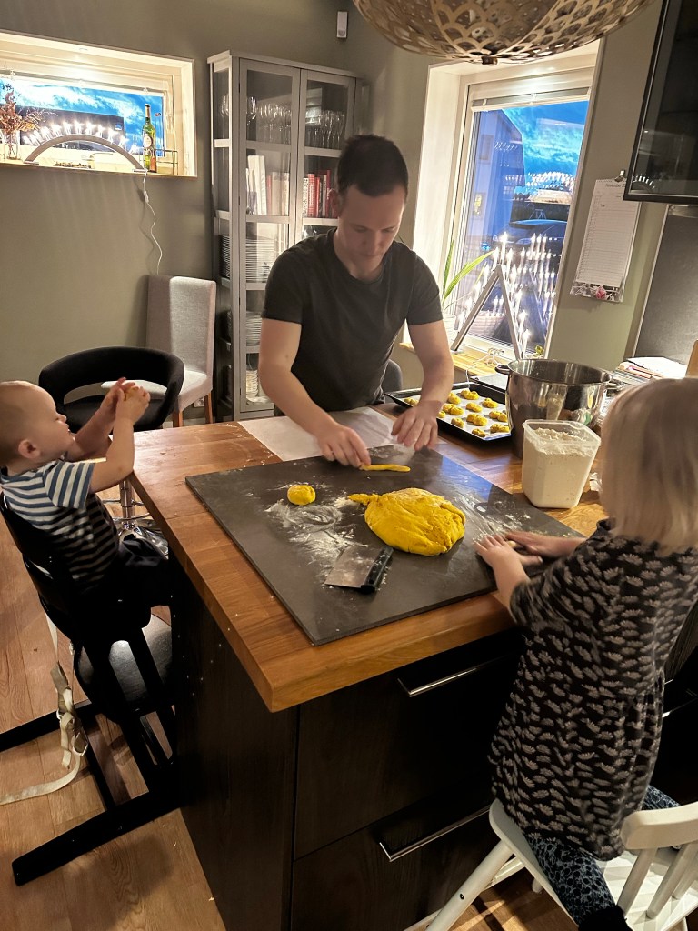 Något annat som stod på dagens schema var årets lussebullebak! Wilhelm som fullkomligt älskar att hjälpa till i köket fick assistera med att göra degen och när det blev dags för utbakning så var hela familjen samlad och hjälpte till. Givetvis har vi provsmakat, så luftiga och saftiga! Finns en stor risk att de kommer försvinna snabbt, och det kan nog bli ett till bak framöver!