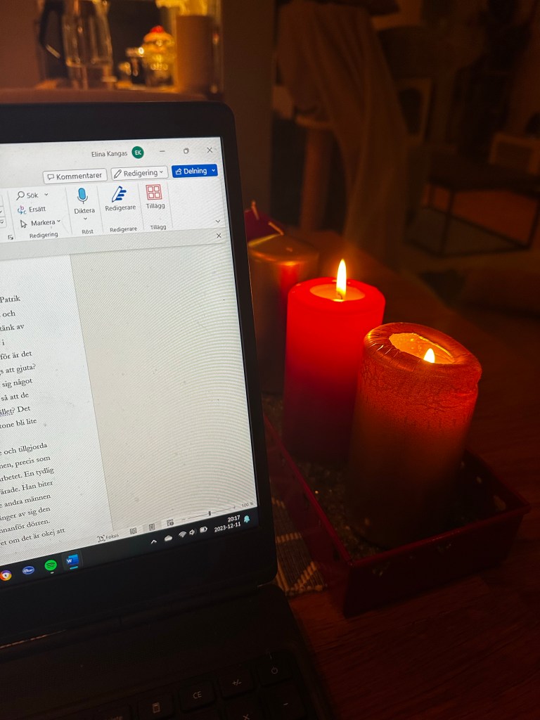 På skrivfronten har jag påbörjat redigeringen av mitt feelgoodmanus som jag har skjutit lite på, och målet är att bli klar med det tills slutet av januari. Ikväll satt jag med de tre första kapitlen samtidigt som jag kollade på musikhjälpen som drog igång idag. Tycker så mycket om att lyssna på det programmet!