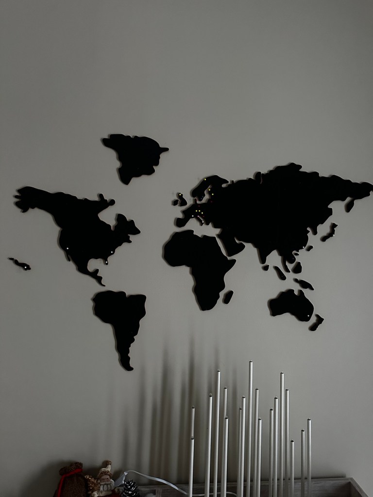 Eftermiddagen gick åt att få allting på plats och årets julklappar har också kommit till rätta. Bland annat två mattor till det andra vardagsrummet, brandfilt och brandsläckare och en världskarta i hallen som det var en del pyssel att få på rätt plats.