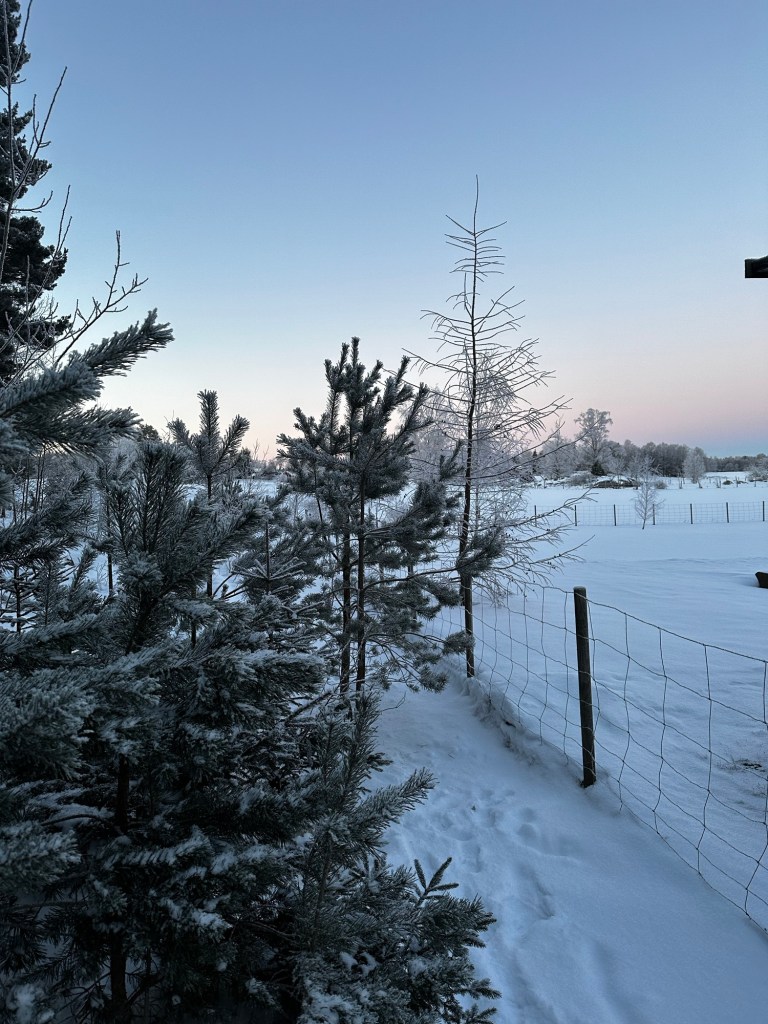 Termometern visade närmare – 24 när det var dags för morgonpromenaden. Både jag och Bartolo var påpälsade men man kan inte säga annat än att det är vackert med all rimfrost. Hemma igen tände vi en brasa vid frukost och vi kommer förmodligen tända en ikväll också ifall det blir strömavbrott som det blev igårkväll. Visserligen höll det inte i sig så länge men man vet aldrig, och längre strömavbrott när det är – 20 utomhus är inget kul!