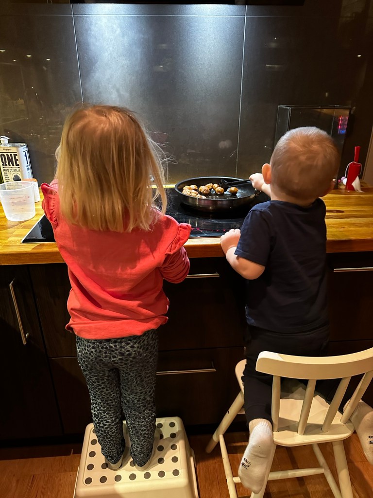 Vi är nyligen hemkomna från en fika hos en granne. Barnen lekte och vi vuxna kunde sitta och prata en stund, ett härligt sätt av avsluta helgen. Ännu bättre var det att jag knappt behövde laga maten när vi kom hem utan det var två andra som ville stå vid spisen. Givetvis hjälpte jag till att hälla av det varma vattnet och så, men i övrigt skötte de allting själva med lite guidning förstås.