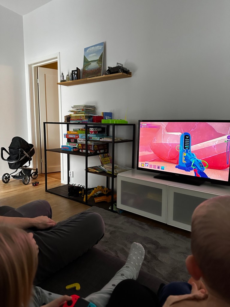 Efter en längre promenad i isande blåst kom tv-spelet fram här hemma. Barnen fick testa spela ett spel där man skulle plocka upp skräp från en strand och hjälpa krabborna att bli friska igen. Mysigt att sitta hela familjen en stund och spela lite tillsammans.