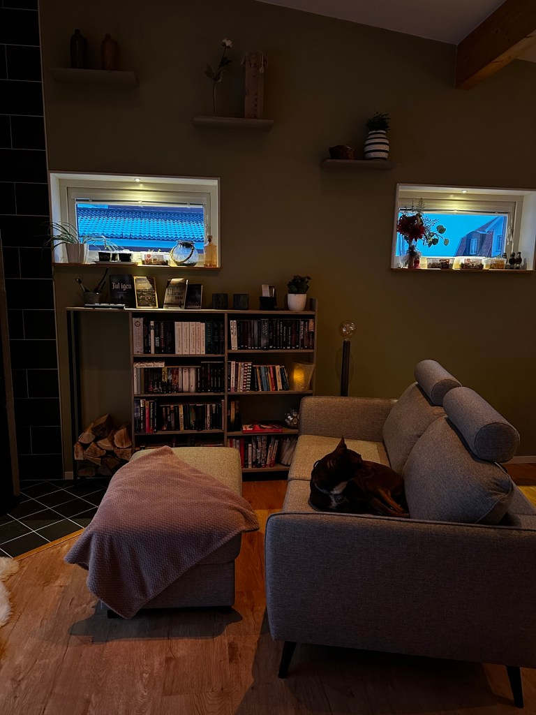 Igår hämtade vi hem vår nya soffa till läshörnan. Tanken var först att jag skulle ha en fåtölj där men vi insåg rätt snabbt att det var fler som gärna ville kunna sitta där så det fick bli en soffa med fotpall. Tyvärr var soffan trasig i ryggen när vi öppnade paketet så vi har pratat med Mio för att reklamera den, men tills det är löst får vi använda soffan så nu står den på plats. Och vi är så nöjda med hur det blir!