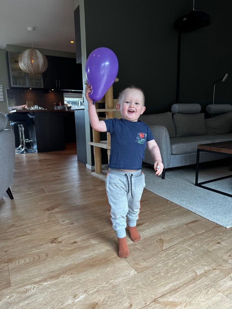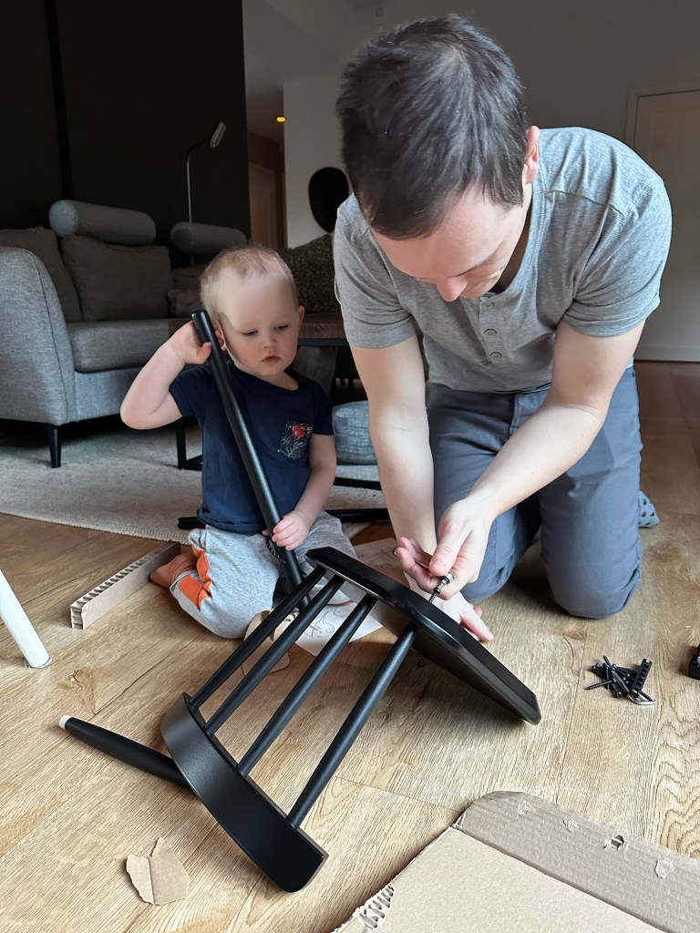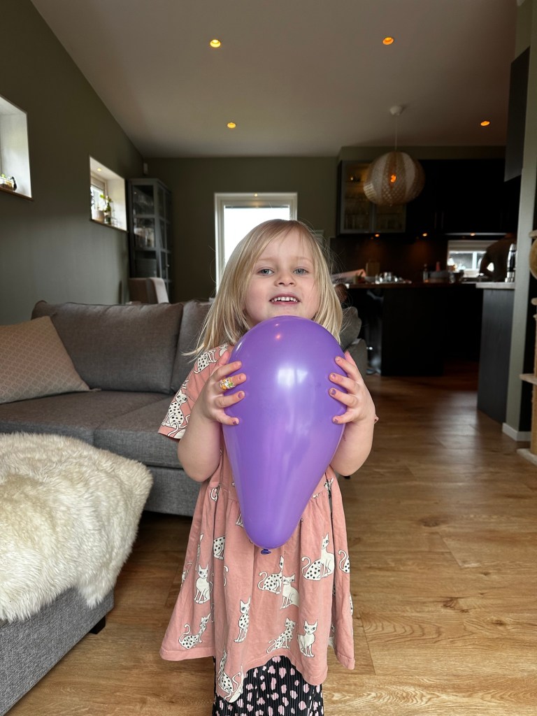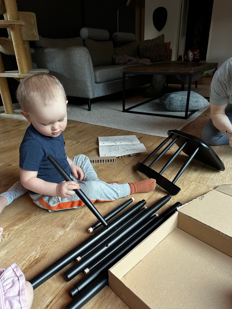 Första paketet kom fram redan innan frukost, och det passade sig väldigt bra då det var en ny stol! En av de bästa sakerna tyckte W helt klart var att hjälpa till att sätta ihop det. Efter en lyxfrukost med blåbärssmoothie åkte ballongerna fram och barnen lekte på medan vi förberedde tårta.
