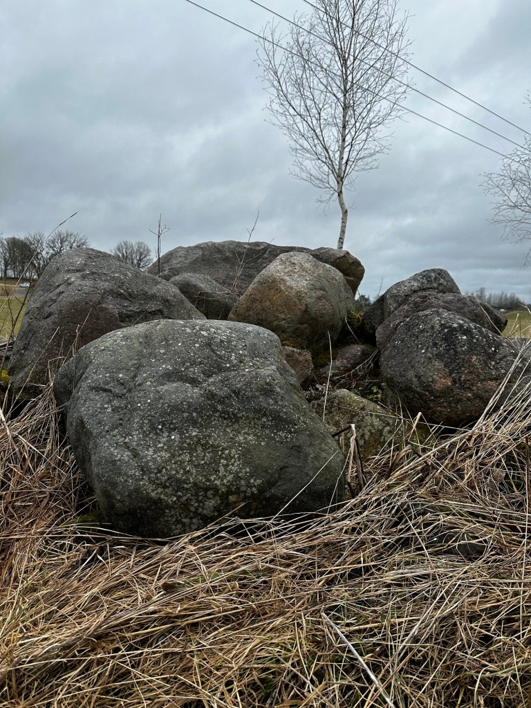 Veckans tema i Maddes utmaning är statyer, något det inte finns direkt mycket av i det lilla samhället där jag bor. Jag har sett en, och den är inne i en trädgård så den är inte värst lämplig att fota. Och eftersom jag varit hemma med förkylning hela veckan har det inte blivit någon tur i stan heller. Det fick helt enkelt bli att tänka om. En staty är ett typ av minnesmärke och något som jag tittar på varje gång när jag går grusrundan hemma är ett gäng stenar som ligger längs vägen. De är som ett litet eget monument, ett riktmärke om att grusvägen börjar.