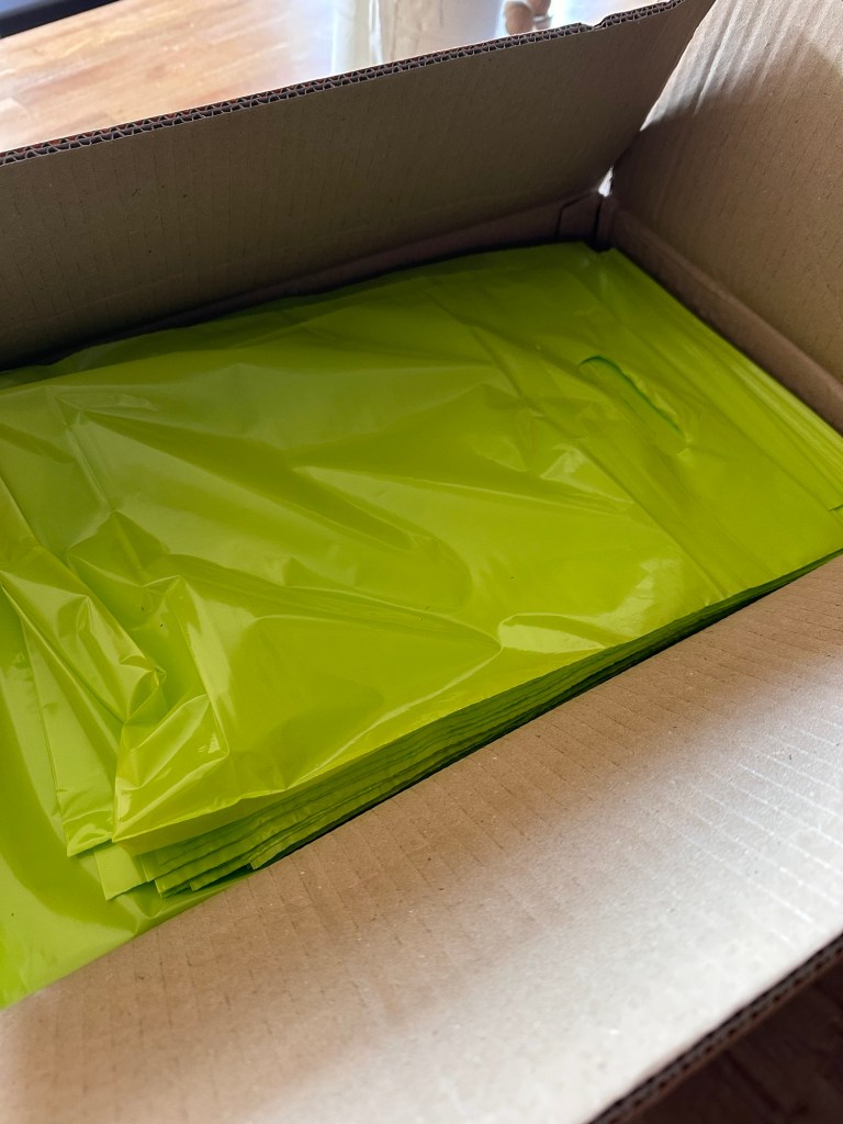 Äntligen fredag! Joakim har gjort sin sista dag på sitt gamla jobb och idag hämtade vi paketet med våra påsar till morgondagens marknad. Så skönt att de hann fram i tid och storleken var perfekt, likaså färgen. Grön påse hör till grönt tält, eller hur? Det blir nog lätt för folk att hitta oss imorgon då jag tror att vårt tält kommer sticka ut, och det är kul med ett färgtema.