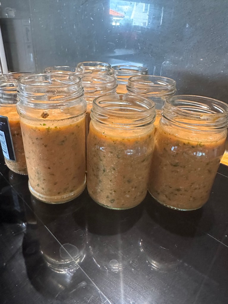Något trevligare med dagen var tomatpeston vi gjorde. Vi hade en massa tomater som behövde användas upp och då vi äter en del röd pesto tänkte vi att vi kunde testa göra egen, och så god den blev! Och smidigt att göra ändå!