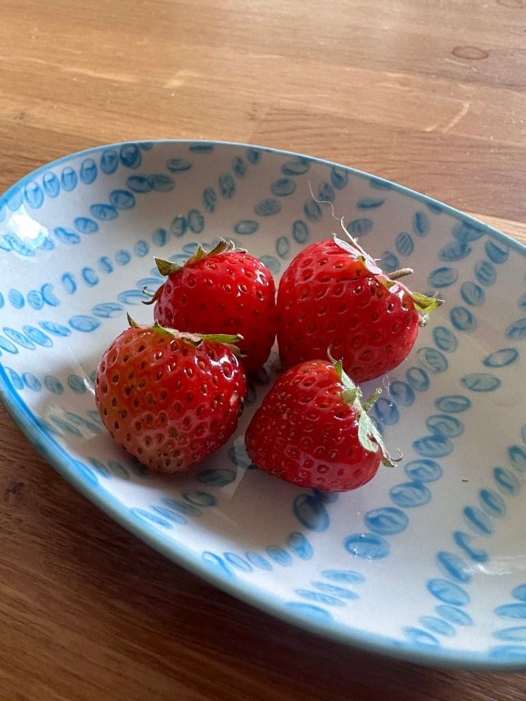 Vad gott med egna jordgubbar. Jag längtar till vi får smaka på våra egna 🍓.