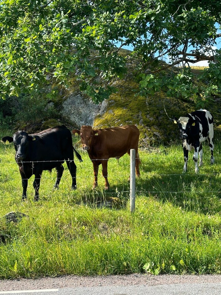 Vi har hängt så mycket som möjligt i trädgården men när igår när åskan och regnet bestämde sig för att komma fick vi gå in. Det degades, vi tränade tillsammans och städade. Vi rensade bort en del och det resulterade i en promenad till återvinningen idag. Vi fick dessutom sällskap på vägen av ett par nyfikna kalvar.