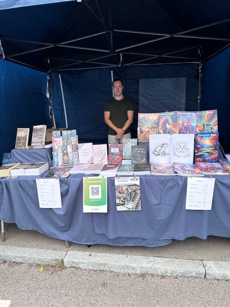 Allt som allt, en bra marknad. Vi har blivit skickliga på att få upp och ner tältet snabbt efter att ha satt upp det tre dagar i rad. Jag sålde ett flertal av mina böcker, och blev positivt överraskad att flera köpte min novell Mörka rummet. Dessutom var många intresserade av Springor av mörker och flera lappar om det kommande boksläppet gick åt.