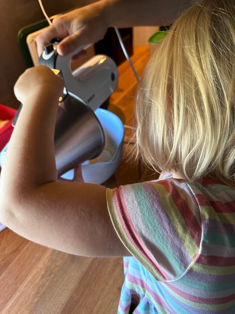 I lördags kom Joakims föräldrar på besök. Då vi saknade fika hemma slängde vi ihop en sockerkaka innan Joakim tog med sig barnen för att köpa en begagnad åkgräsklippare. Det blev en dag med fint väder, lek och bus och trevliga samtal.