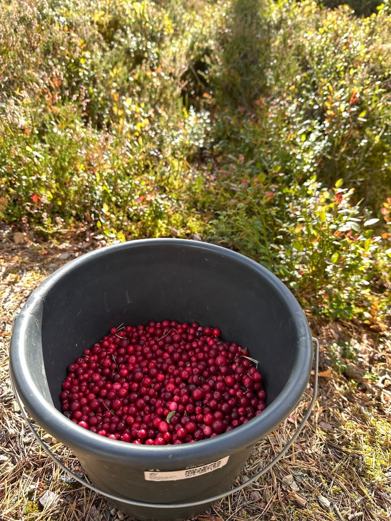Vi passade även på att ge oss ut i skogen och plocka lingon. Det kändes som det var i sista stund så många hade blivit övermogna. Men vi fick ändå med oss tre liter hem och nu har vi kokat lingonsylt så det räcker till nästa år.