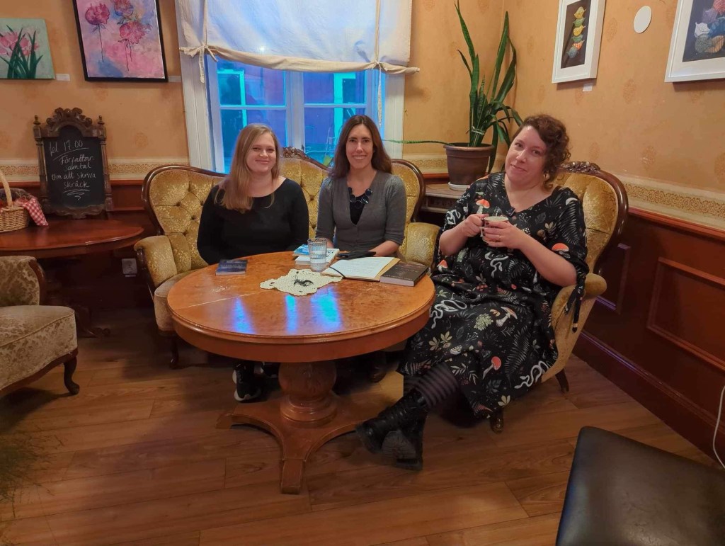 Jag, Frida Gamero Käll och Sara Engström pratade om våra böcker och vad vi gillar med just skräck. Ett mysigt och roligt samtal, och det var faktiskt några som kom och lyssnade. Lika nervöst varje gång om det kommer dyka upp någon och jag gick även några böcker sålda.