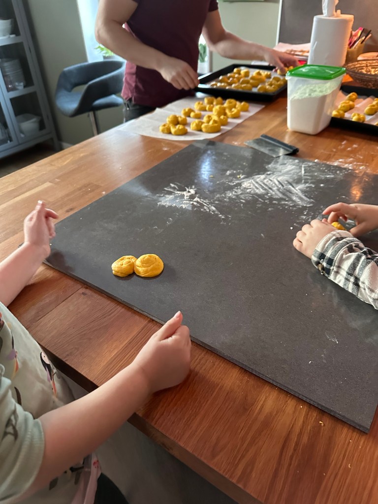 Idag har vi fortsatt med jultemat och bakat lussekatter. Hur kommer det sig att säsongens första hemgjorda lussekatt alltid smakar himmelskt? Tror de kommer gå åt snabbt här hemma. Men det gör inget, jag har inget emot att baka fler och barnen tyckte dessutom att det var riktigt kul att forma lussekatterna.