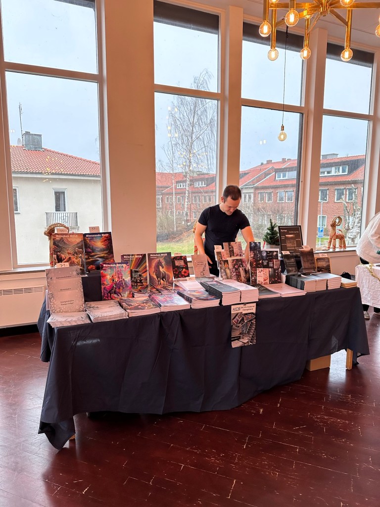 Men i söndags var det dags för tryckeriets första julmarknad, och det gick jättebra! Otroligt skönt att den var inomhus får jag säga då tryckprodukter och regn och blåst inte är den bästa matchen. Det var hela tiden folk på marknaden och vår populäraste produkt var föga förvånande våra målarböcker. Några av mina böcker gick också åt, vilket alltid är kul!