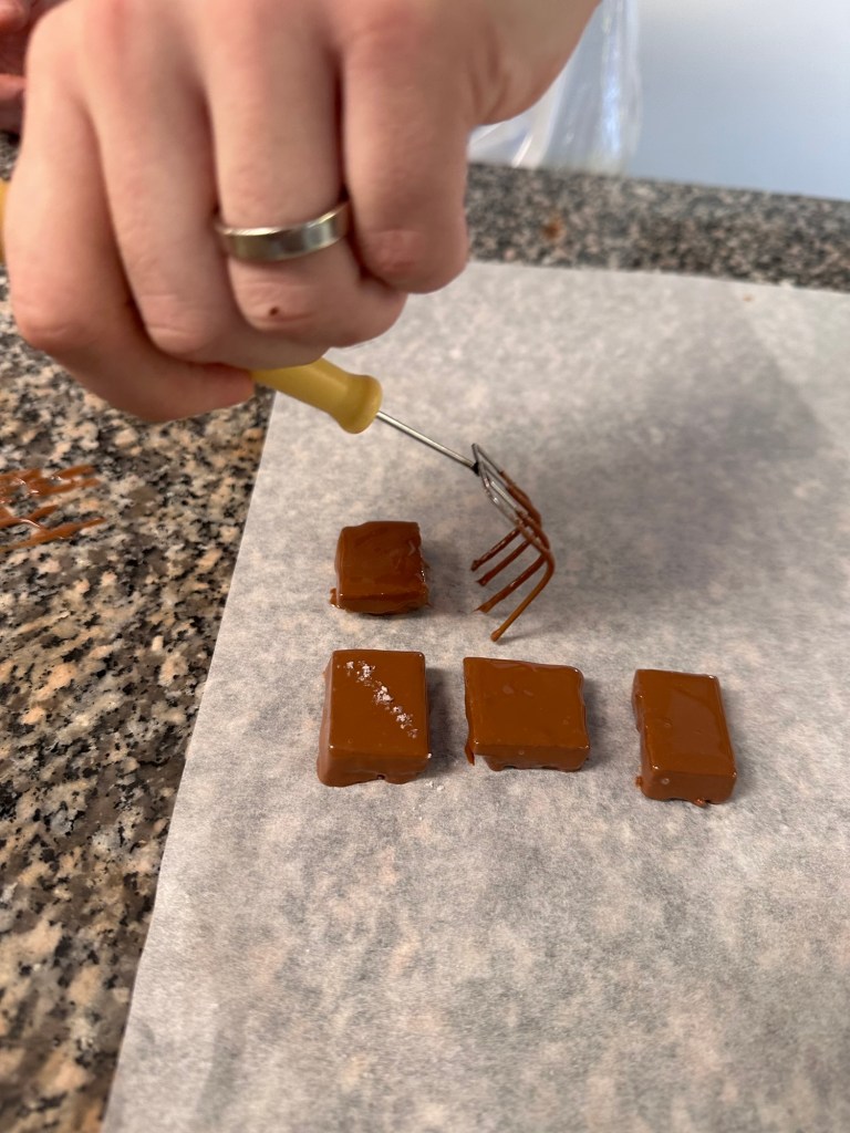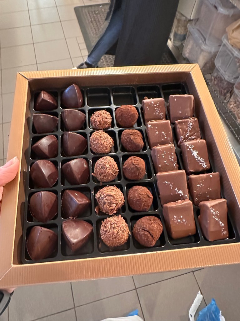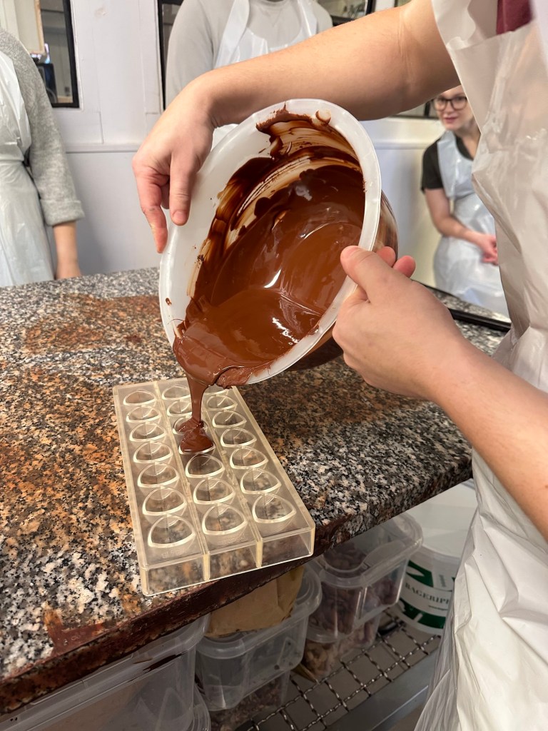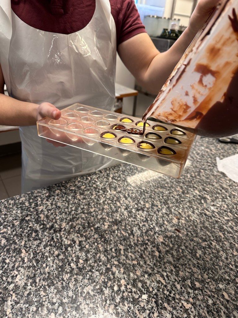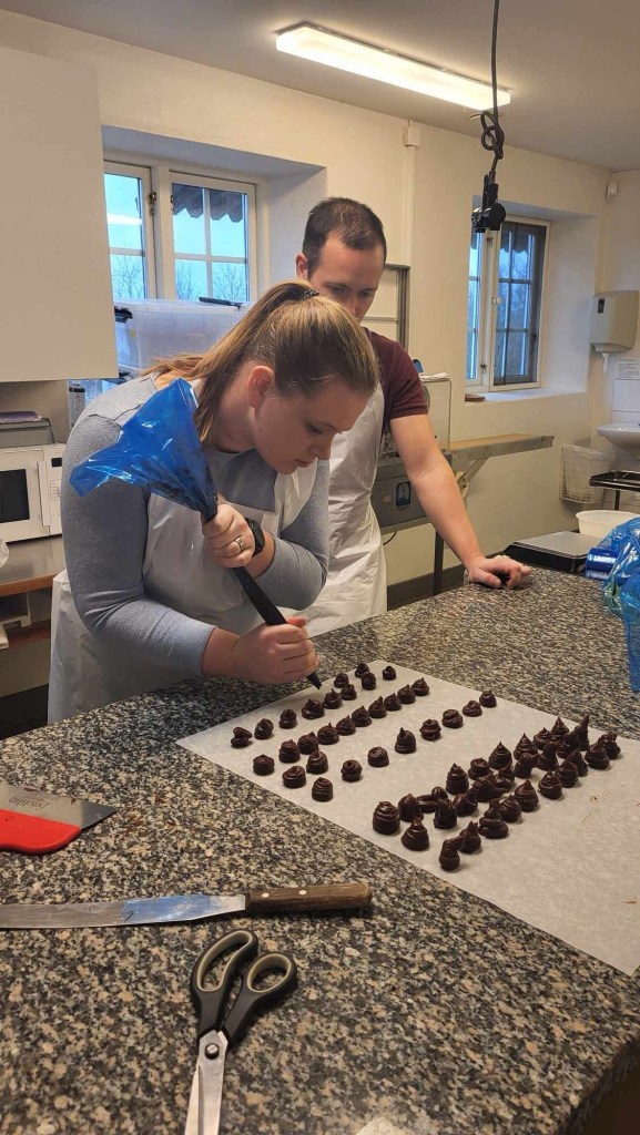 Vi gjorde tryfflar, mandelnougat och chokladpralin med passionsfruktsfyllning. Vi fick lära oss mer om choklad, testa på olika tekniker, temperera choklad, gjuta chokladskal och framförallt hade vi väldigt roligt! Christina som äger chokladverkstan och håller i kursen är lättsam och otroligt duktig. Vi fick även med oss våra egengjorda skapelser med hem, och de är så goda! Jag kan helt klart rekommendera att testa detta.