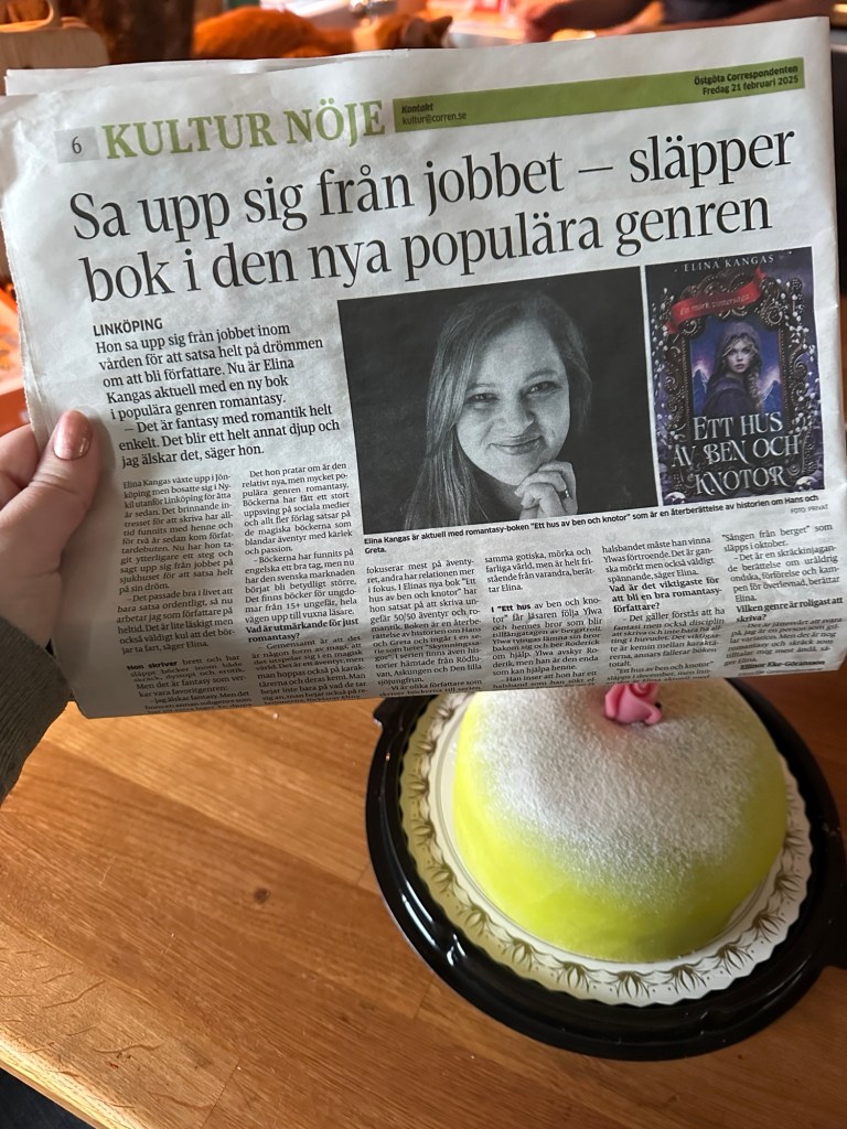 Jag försökte läsa tidningsartikeln på bilden, och såg förstås inte allt som stod där. Men det är underbart när människor såsom du hoppar ur ekorrhjulet och följer den stora drömmen. Romantasy hade jag inte hört talas om, men så som den beskrivs är den absolut något för mig.