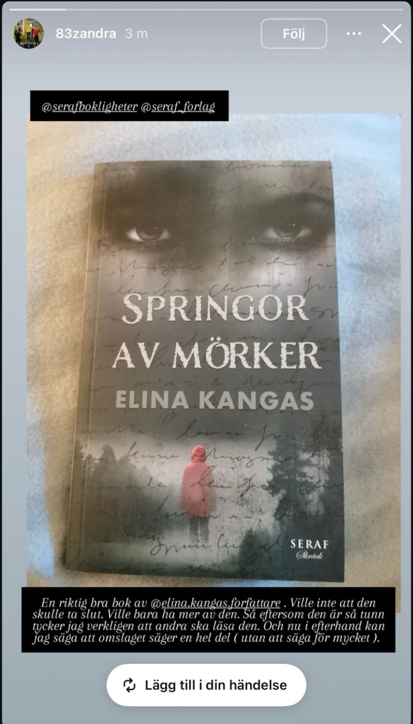 En annan sak som alltid känns roligt är när folk delar med sig av att de läst mina böcker, det är så kul och smått overkligt varje gång! Och jag är så tacksam över att folk vill läsa, och att de taggar mig så att jag ser det. Skrivandet kan kännas ganska ensamt emellanåt, och ibland är det svårt att veta om ens böcker når någon.