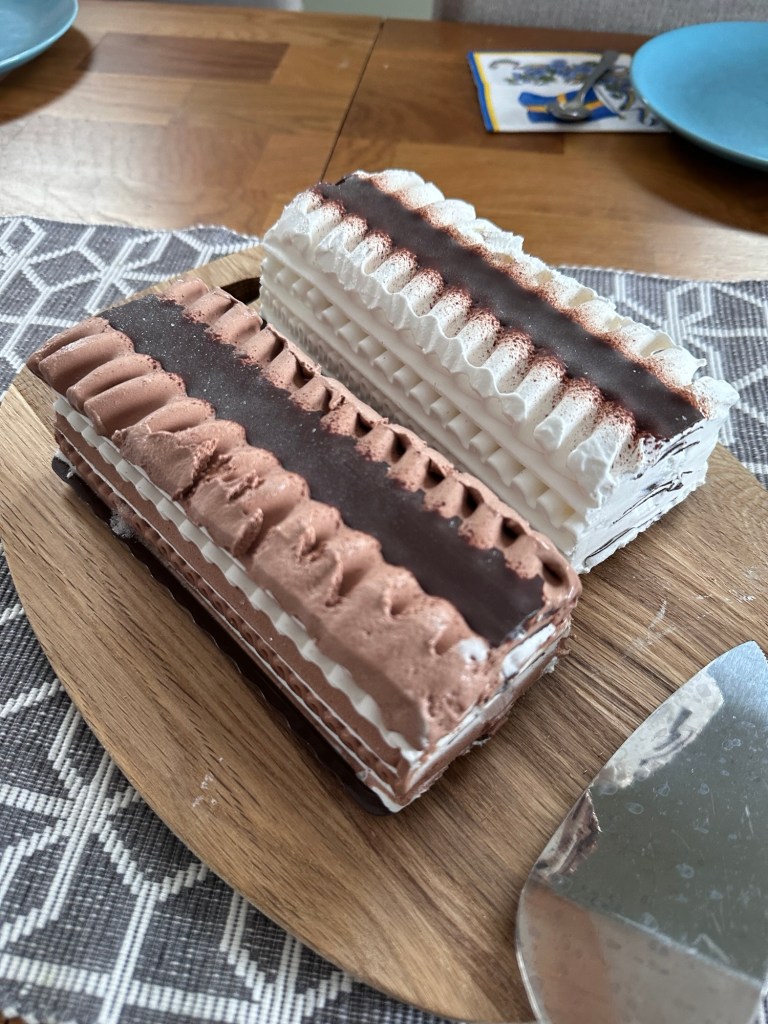 Då M inte är särskilt förtjust i vanlig tårta så köpte vi hem lite glasstårta, vilket var väldigt uppskattat hos oss alla.