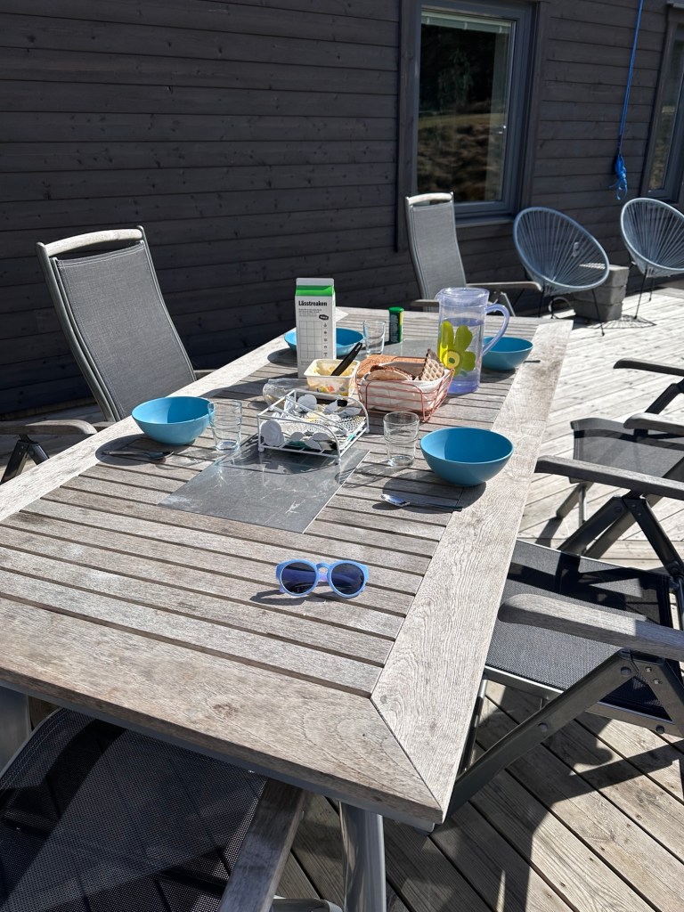 Att äta ute är något speciellt. Nu har föreningen burit ut våra utemöbler så det kommer bli betydligt mer tid utomhus. Bästa