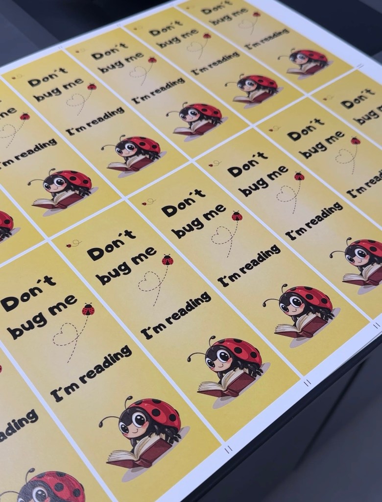 Det tillbringades också en tid ute i garaget då vi tryckte ett gäng nya bokmärken och stickers som snart ska upp i tryckeriets webbutik.