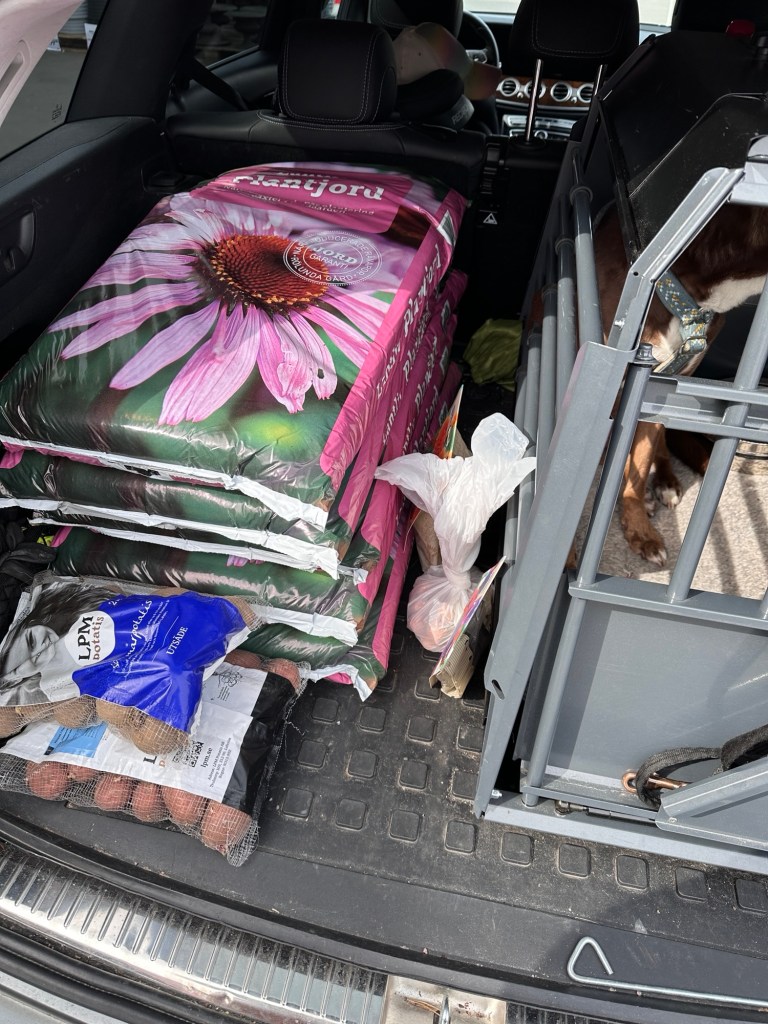 2. Slängde ner sättpotatis igår och hoppas det blir något. Kom dock på nu att jag glömde att vattna. Får väl vattna nu innan jobb.