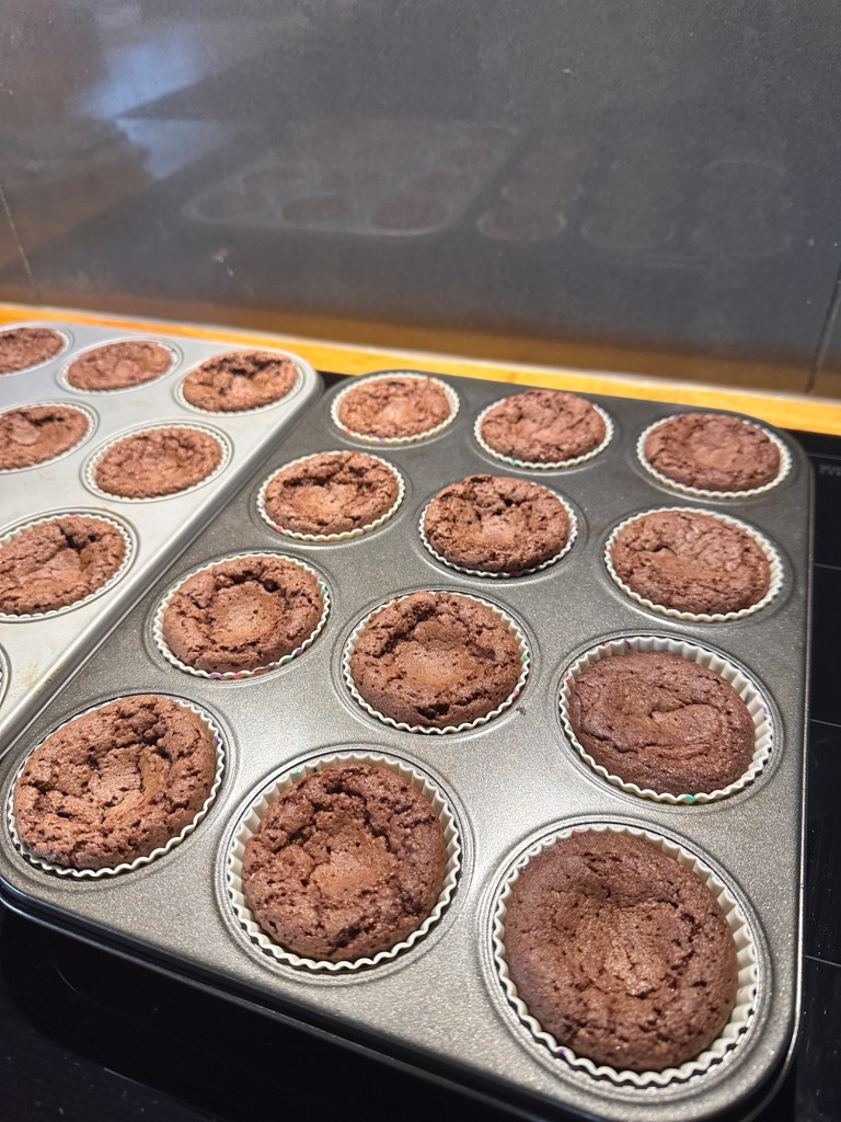 Vi hamnade i köket och bakade kladdkaksmuffins och barnen turades om att hälla i ingredienser och vispa. Resultatet blev hur gott som helst och de visade stolt upp muffinsarna för Joakim när han kom hem.