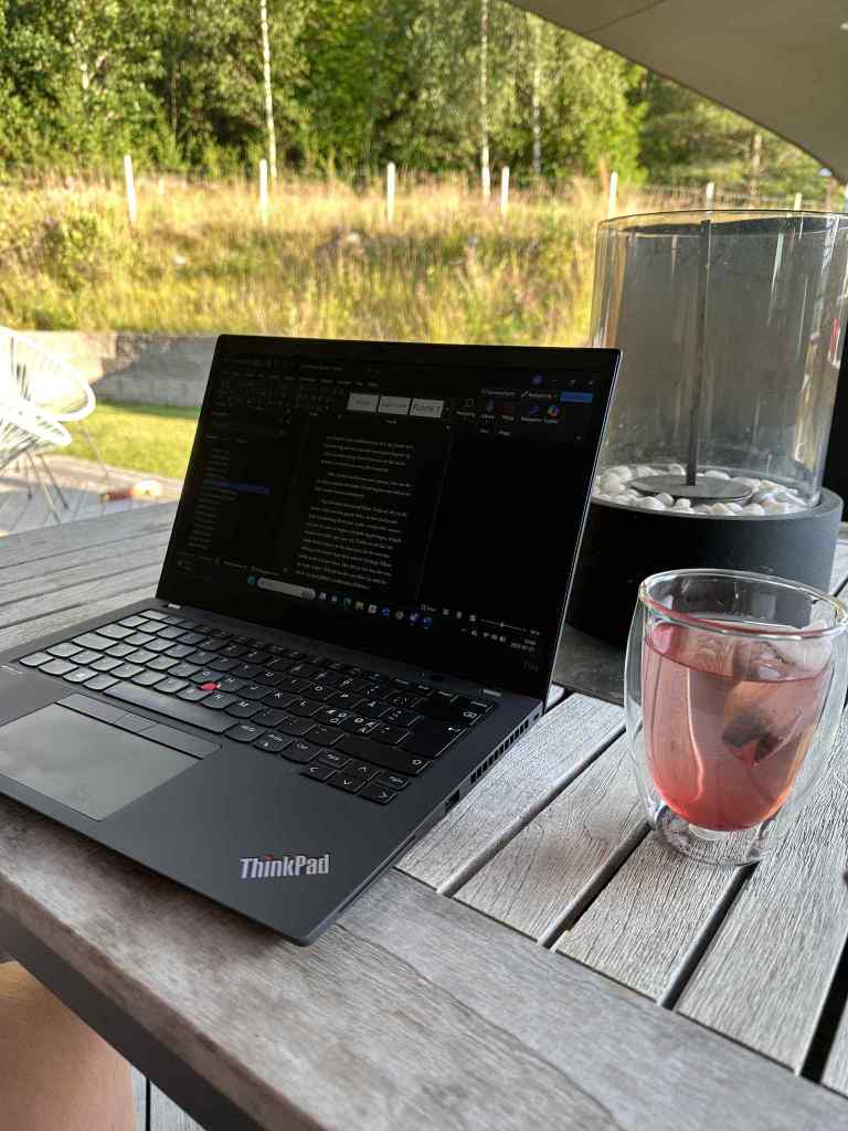 Men vissa kvällar jag ändå fram datorn och sätter mig och skriver en stund när andan faller på och orken finns. Och det är så härligt att kunna sitta ute och skriva.