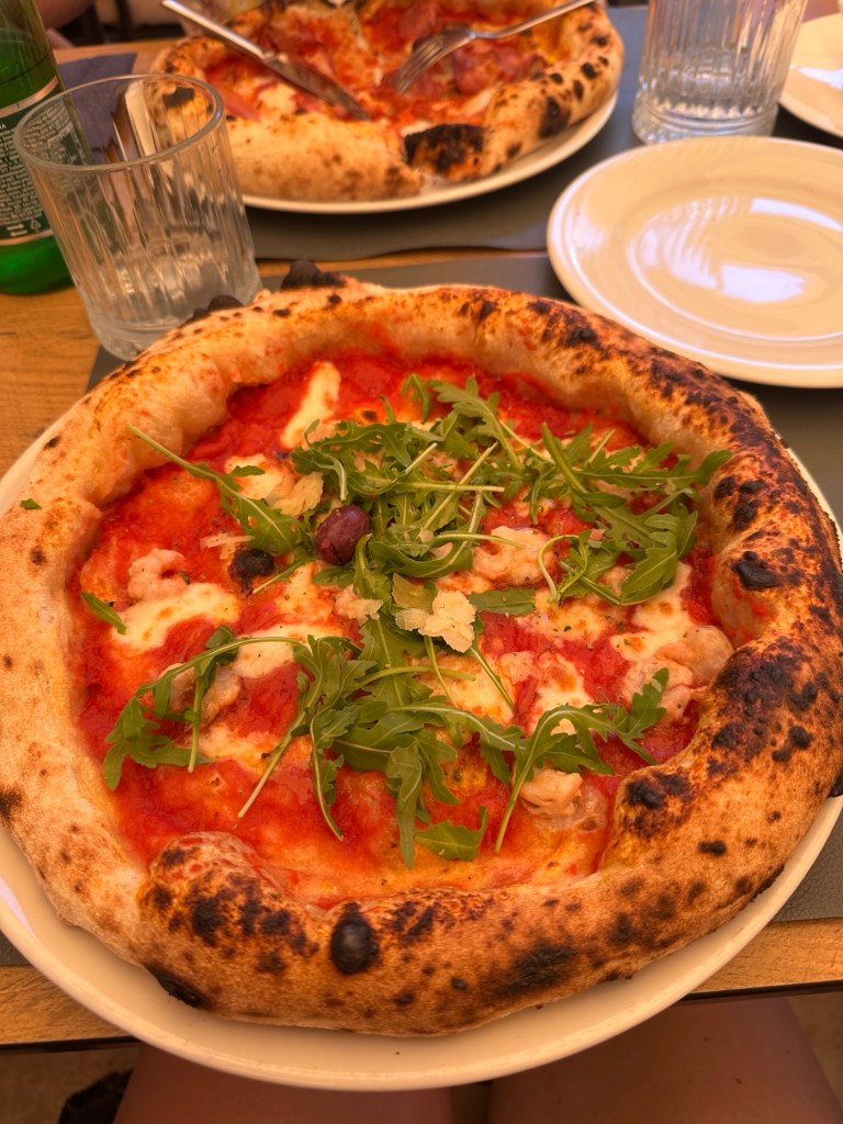 Med väskorna tog vi oss till en närliggande park för att hålla oss i skuggan och inväntade mina föräldrar som kom med flyget. Och vi behövde inte vänta särskilt länge innan de också var på plats och det var dags för lunch. Efter lite letande hittade vi en bra restaurang med skugga, och vi vuxna körde på pizza medan barnen åt pommes och chicken nuggets. Har aldrig sett så stora barnportioner tidigare.
