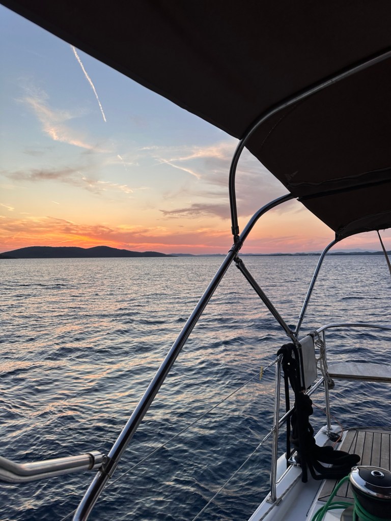 När vi väl kom fram till Primosten konstaterade vi att det var alldeles för blåsigt där för att ligga för ankare så vi letade vidare och hittade en plats utanför en annan ö.