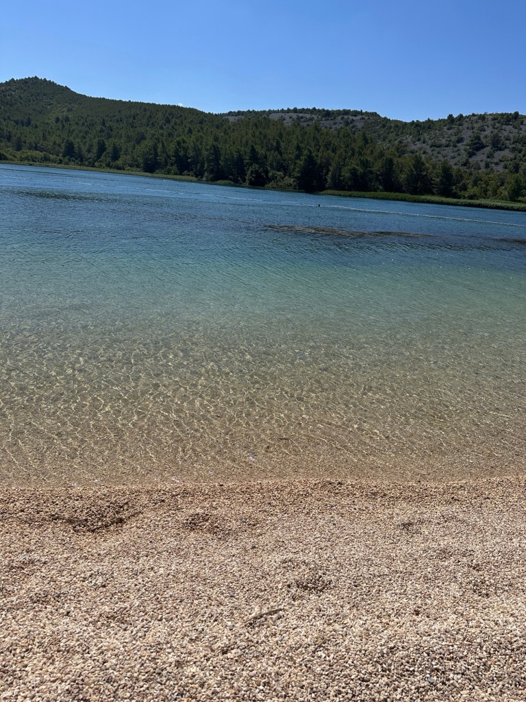 Natten i Skradin var lugn och det blev till och med sovmorgon. Eftersom barnen verkligen älskade att bada vid stranden dagen innan tog jag och Joakim med oss dem efter frukost för att bada igen medan mina föräldrar var och handlade för de kommande dagarna.