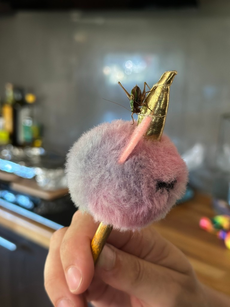 Under veckan fick vi en inneboende, och det var ingen mindre än gräshoppan Hoppis (barnen fick äran att döpa det). Hoppis har hängt med oss i köket de senaste dagarna, suttit högt upp på skåp och flyttat sig runt och spelat. Har varit lite roligt ändå och varje gång man hört den spela så har man försökt hitta den. Hoppis har inte verkat vilja gå ut trots att vi har öppnat både dörrar och fönster.