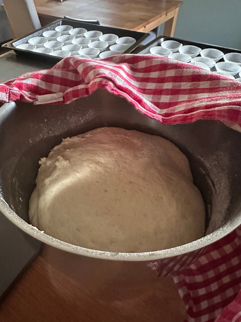 Eftermiddagen och kvällen har också försvunnit i ett nafs men vi har hunnit med mycket också. Det har skördats både lök, krusbär och björnbär i trädgården. Det blev även en sats med pizzabullar bakade.