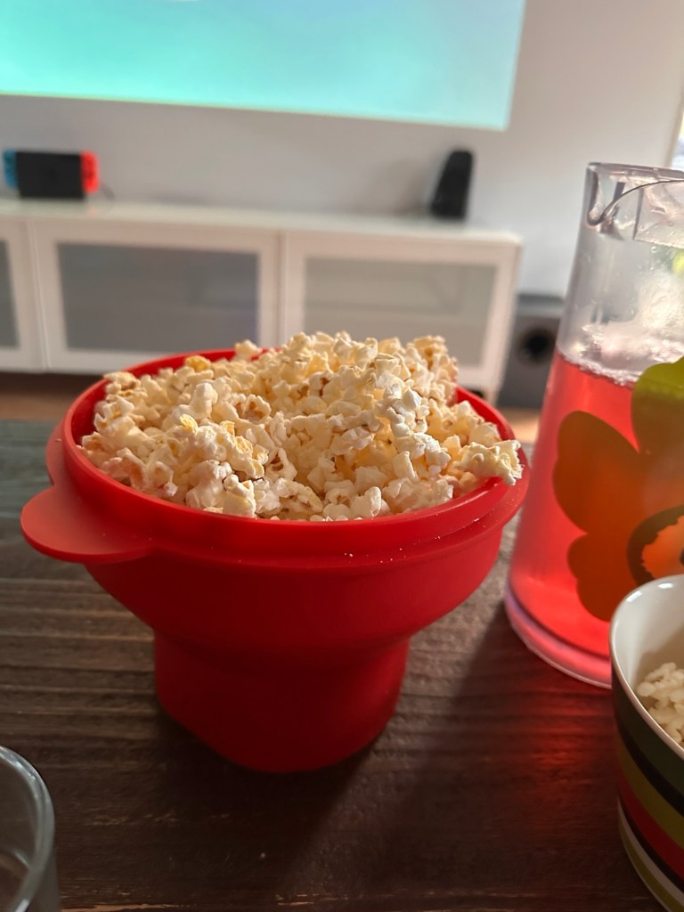 Barnen efterfrågade pyjamasparty här hemma, vilket innebär popcorn, film och givetvis pyjamas. Så ikväll såg vi på Bilar, och fick dessutom testa vår nya popcornskål för micro som vi fick i födelsedagspresent.