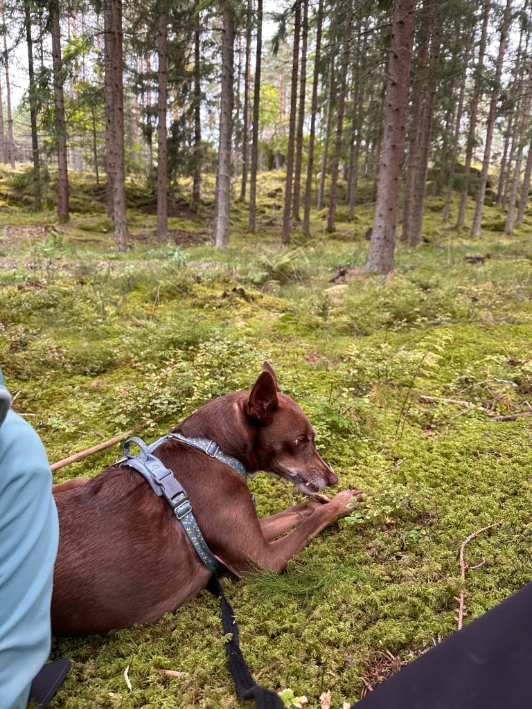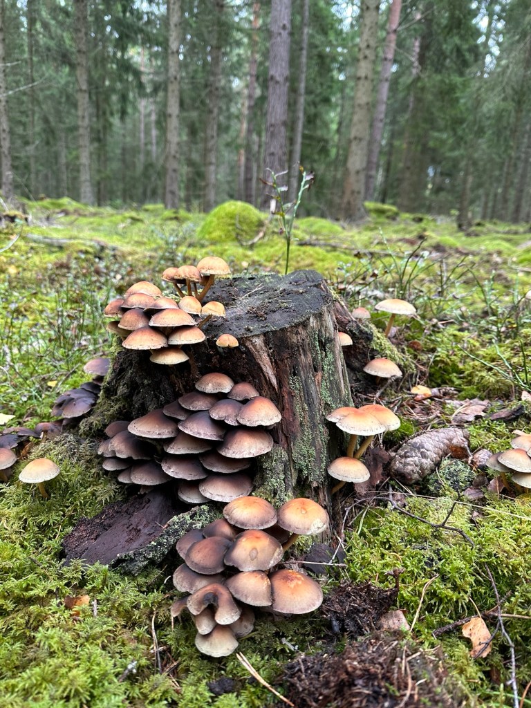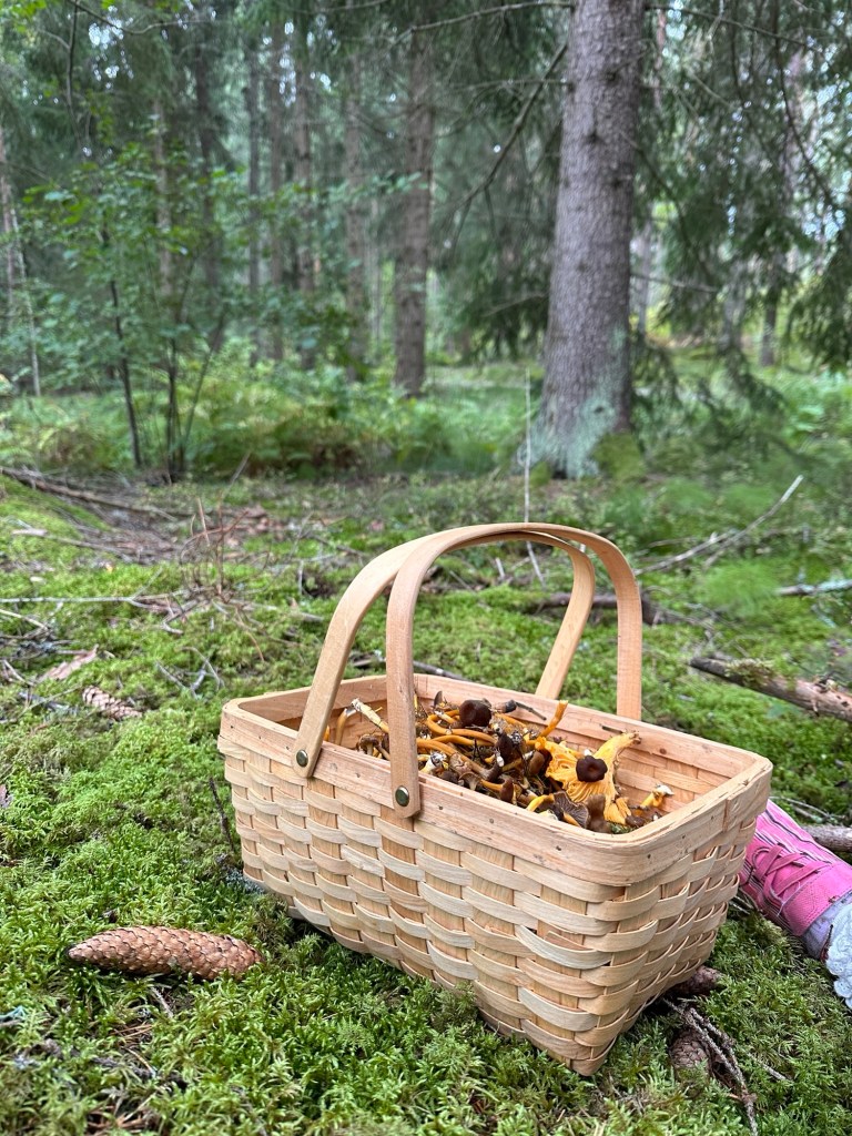 Idag har det varit en betydligt lugnare dag, hela familjen tog sovmorgon. Ända tills W öppnade altandörren för att släppa in en katt utan att huset var avlarmat, så det blev ett bryskt uppvaknande när larmet tjöt och jag fick springa upp för att larma av. Kanske inte det bästa uppvaknandet, men något som var betydligt bättre var att vi gav oss ut i skogen efter frukost. Och vi hittade en massa svamp, både gula kantareller och trattkantareller. Barnen tyckte det var så roligt att plocka. Vi var ute i ett par timmar vilket var jättehärligt och fikakorgen var med.