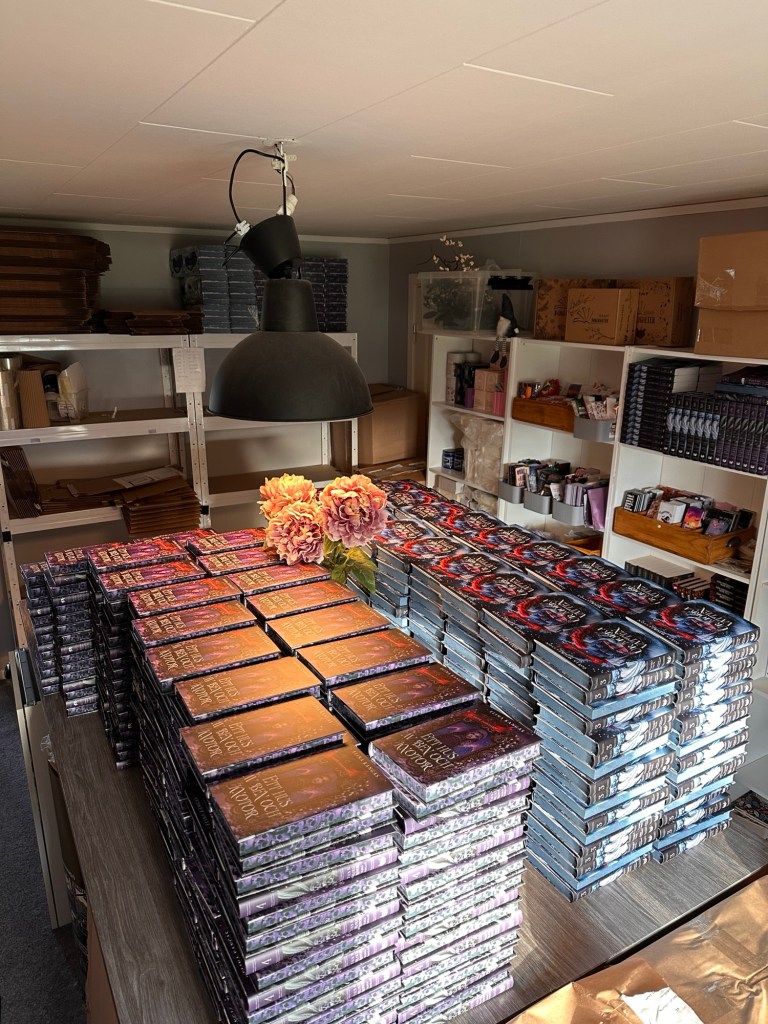 Idag har jag varit hos förlaget och signerat specialutgåvan av min kommande bok ”Ett hus av ben och knotor”. 340 böcker har signerats! Det var så häftigt och surrealistiskt och se alla böcker ligga på bordet. Och sedan att veta att alla de här kommer skickas ut till de som har beställt bokboxen. Det tog sin lilla tid att signera men jag hade ju sällskap av min förläggare Caroline och författarvän Sofia som också har med sin bok Ur mörka vatten i boxen. Så vi stod och pratade hela tiden medan vi signerade, så mysigt!