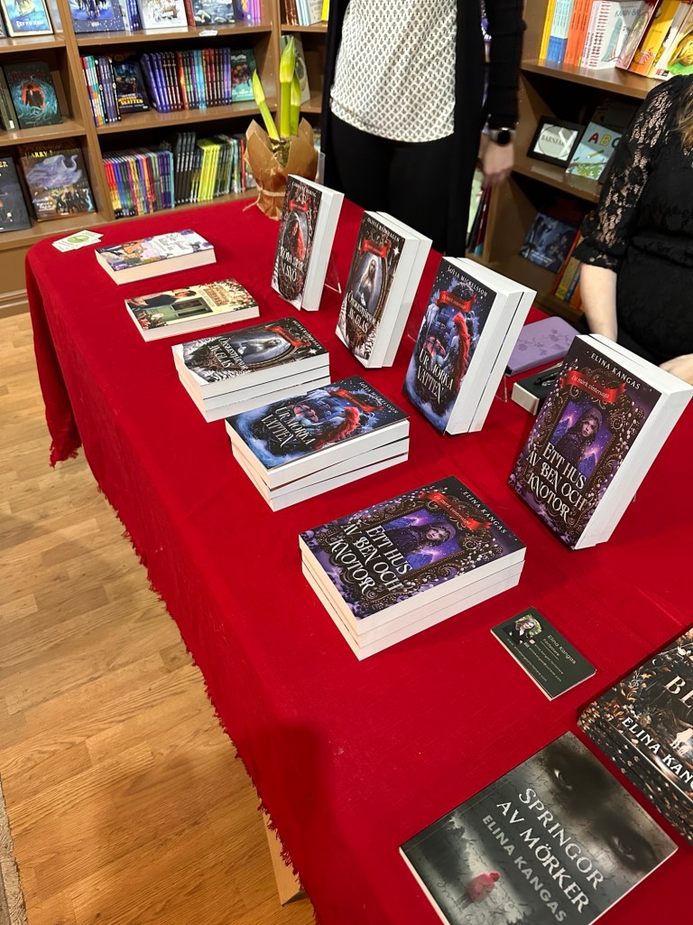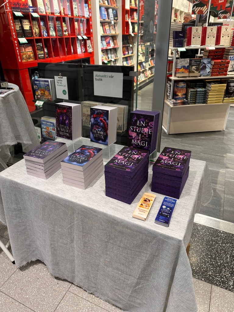 Sedan blev det en lugn kväll på hotellet, och efter en tidig hotellfrukost så hoppas jag och Sofia in oss i bilen igen och åkte norrut till Jönköping för signering på Akademibokhandeln på Asecs. Denna gång var det tillsammans med Gabriella som är författare och delägare i förlaget.