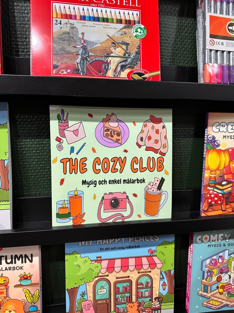 Och en annan rolig sak var att se lite av tryckeriets produkter i butiken. Bland annat målarboken ”The Cozy Club” som jag har ritat, och vår läsjournal. Känns lite overkligt att se dem på hyllorna. Och är i Sölvesborg så måste ni besöka Alice bokvärld, det är en så mysig och fin bokhandel!