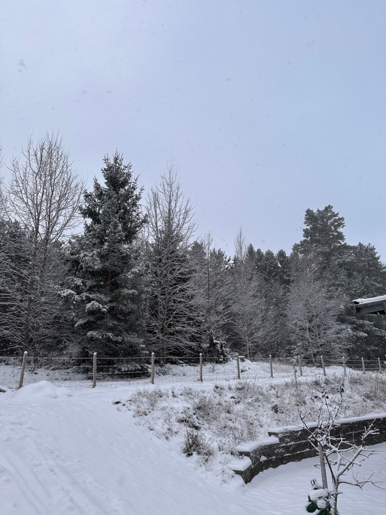 Idag har det fortsatt att snöa och efter frukost gav vi oss ut. Det är så fint nu när det är vitt ute. Vi hjälptes åt att skotta och barnen byggde snökojor i de stora högarna. Tänk vad roligt man kan ha i snön!