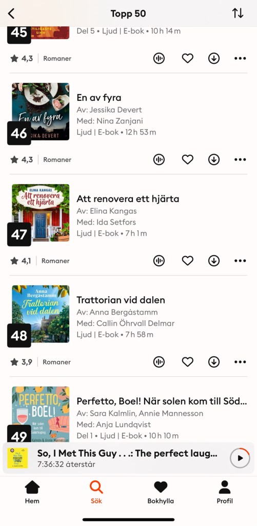 En annan rolig sak är att ”Att renovera ett hjärta” har hamnat på topplistan för feelgood hos Storytel så här tre dagar efter boksläpp! Så himla roligt! Och än så länge har jag fått så fin respons på boken, vilket värmer enormt.
