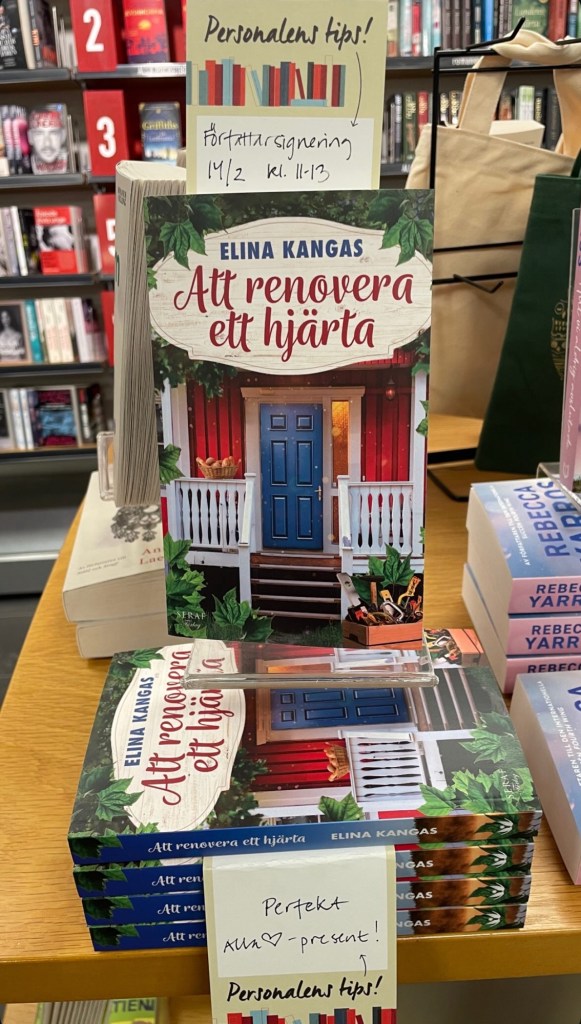Och apropå stora saker! ”Att renovera ett hjärta” finns nu hos två fysiska bokhandlare. Butiker har begränsad yta och tar inte in så många böcker, speciellt inte från mindre förlag och relativt okänd författare. Så att min bok köps in känns så stort!